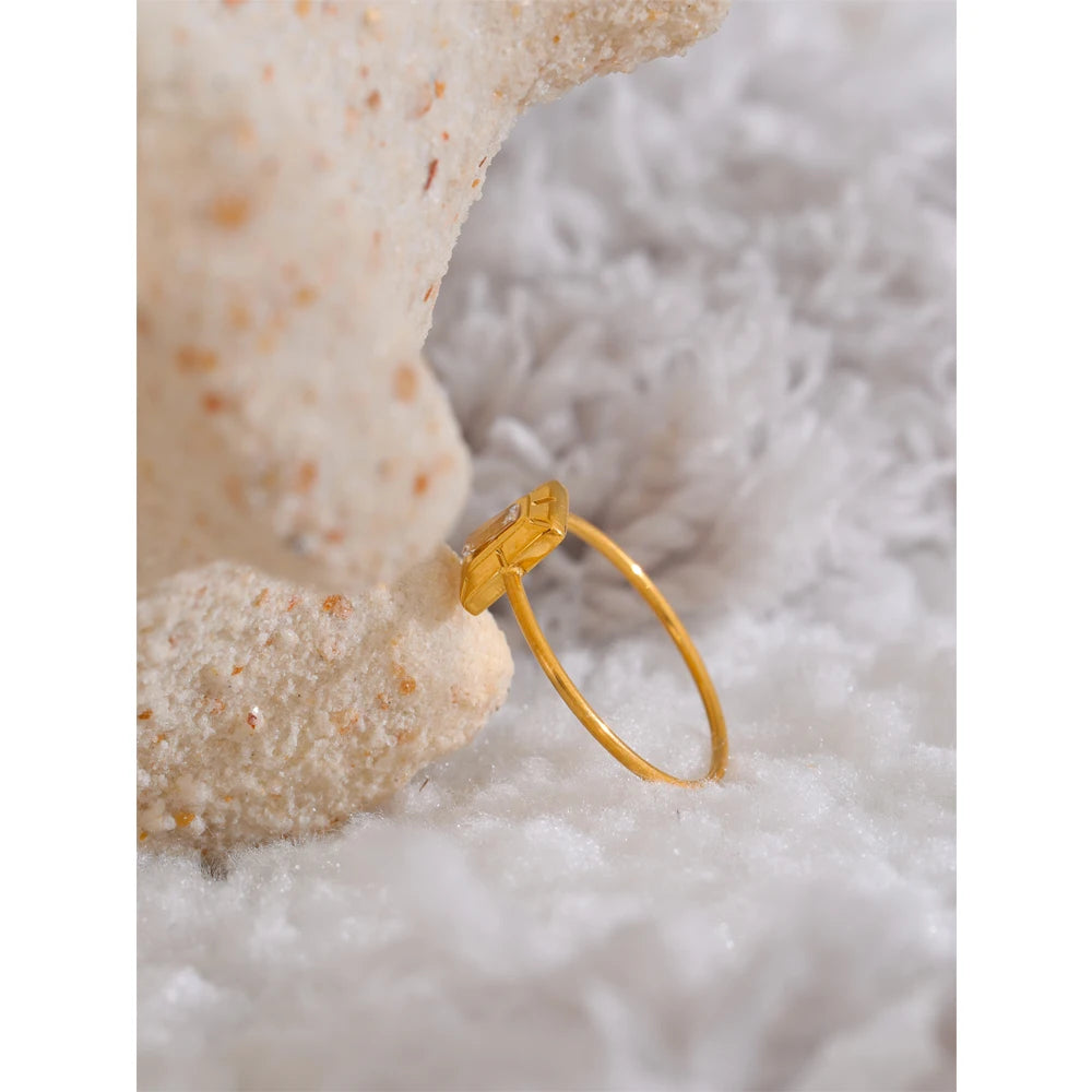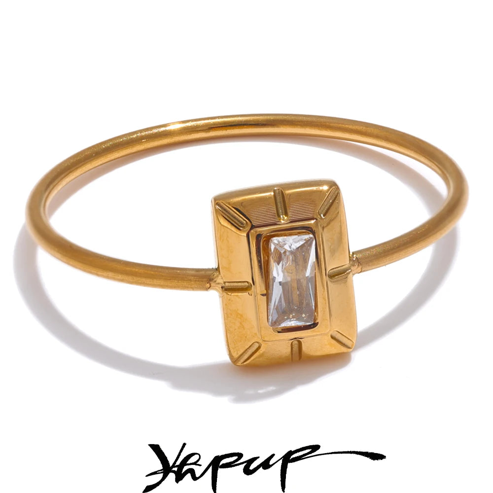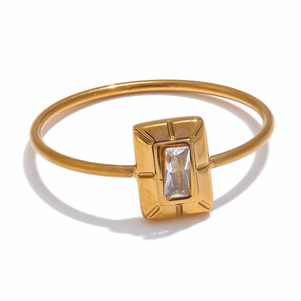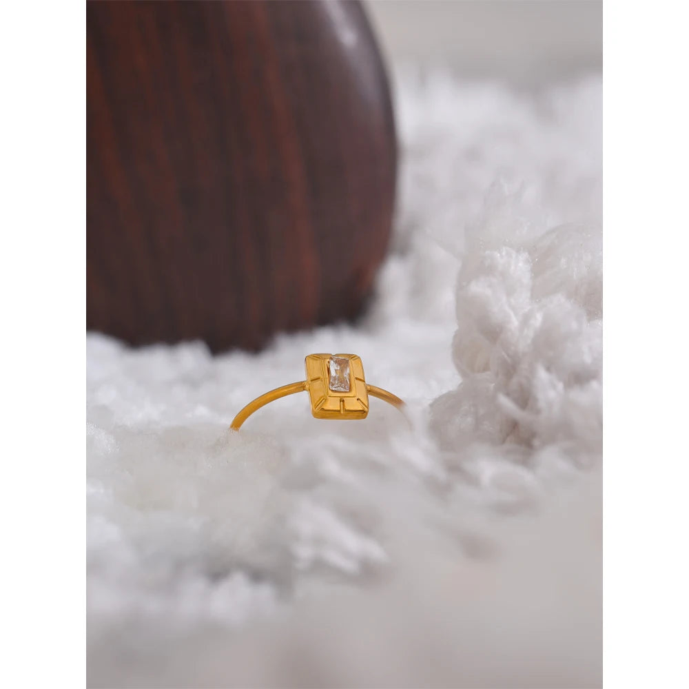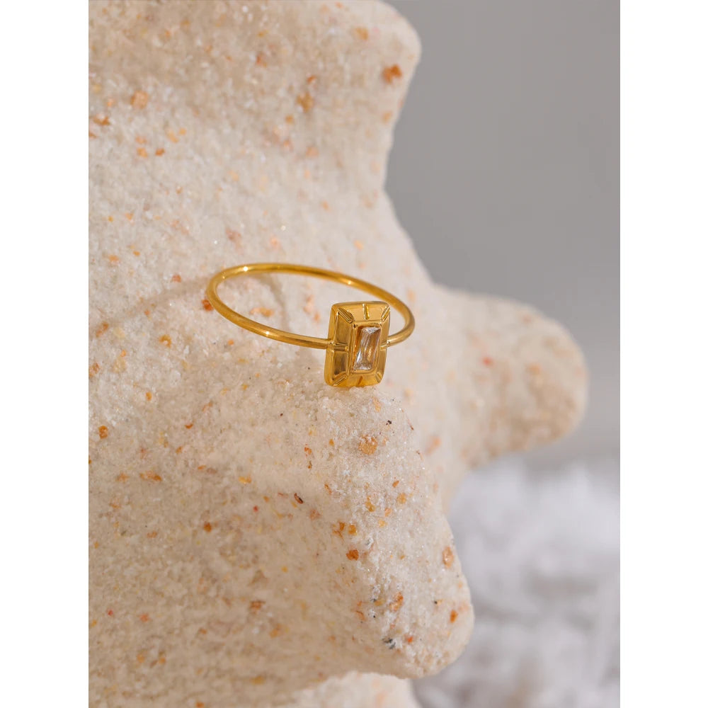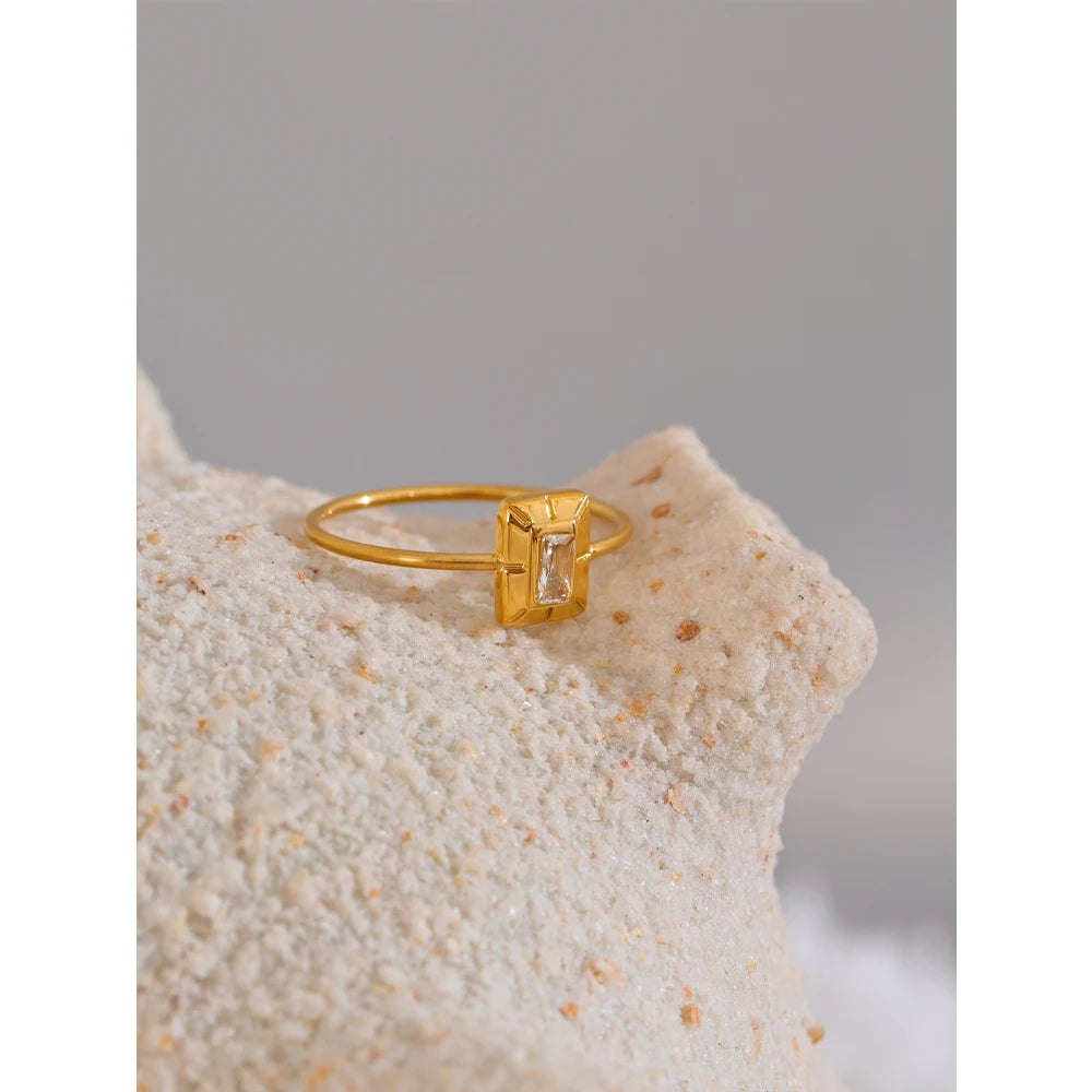 Square zirconia ring. Thin band. 18K PVD plated.